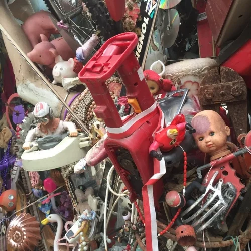 The Cathedral of Junk, where baby dolls, piggy banks, and flamingos coexist